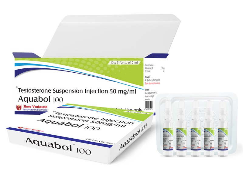 Aquabol is having the drug ingredient called Testosterone Suspension USP 100mg. This is an injectable preparation containing testosterone ester in a water base. Aquabol 100mg contains the highest focus of the active hormone.
