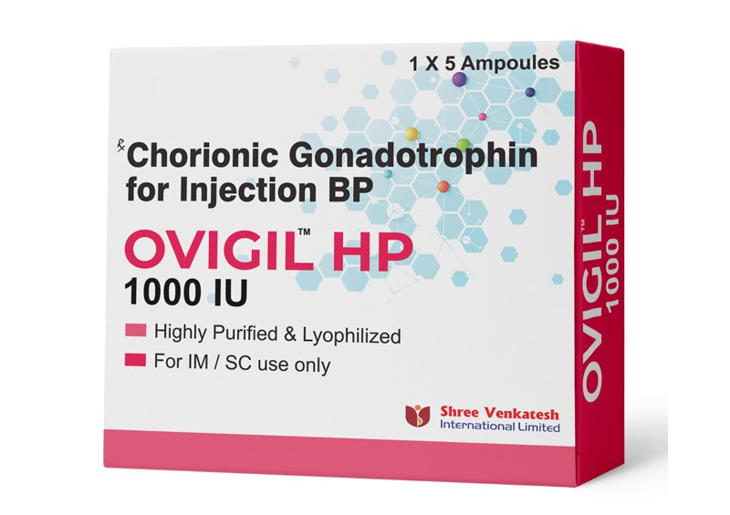 Ovigil 1000 IU is a Human Chorionic Gonadotropin (HCG) injection used to treat infertility in women by stimulating ovulation, and to treat hypogonadism (low testosterone/sperm count) in men, as well as prepubertal cryptorchidism (undescended testes) in boys. It is a hormone-based medication often used in assisted reproductive techniques.