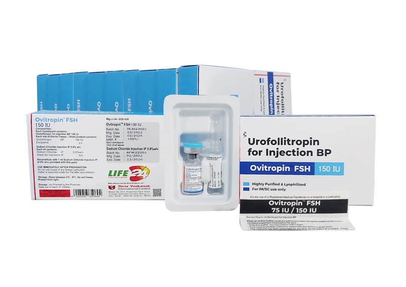 Ovitropin150IU contains a hormone called follicle stimulating hormone (FSH). FSH is a natural hormone produced in both males and females. It helps the reproductive organs to work normally. The FSH in this medicine is obtained from the urine of postmenopausal women. It is highly purified, and is then known as urofollitropin. Ovitropin is used together with other medicines to treat infertility in women with FSH deficiency. Ovitropin is also used to help the ovaries produce multiple eggs for use in “in-vitro” fertilization. Shree Venkatesh International India is the only manufacturer of Ovitropin.